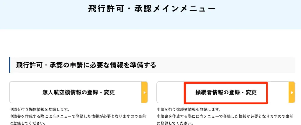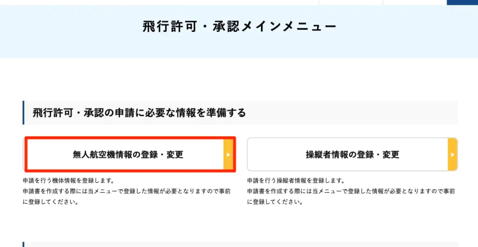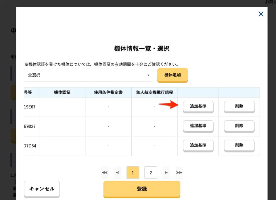 今回の申請で機体を指定するには、機体の追加情報の登録が必要になります。