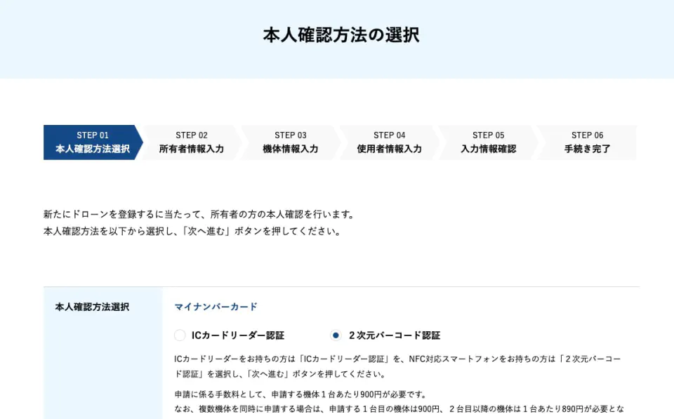 今回、本人確認方法選択ではマイナンバーにし、2次元バーコード認証を選択しました。