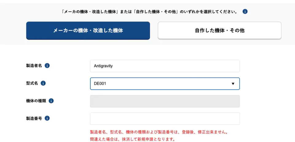 Antigravityのサイトにもフライトガイドとして機体登録等については詳しく説明されているので、あわせてそちらもご覧いただければと思います。