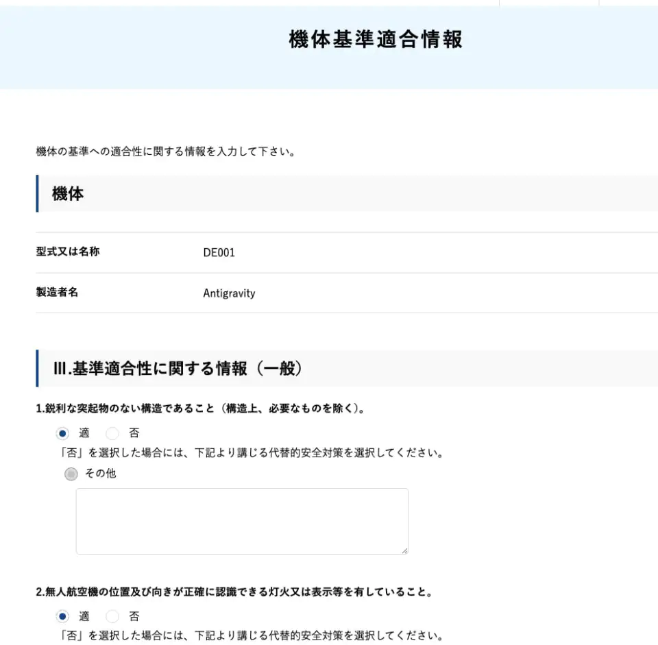 変更理由には「Antigravity A1の機体を新規に追加」を記載しました。