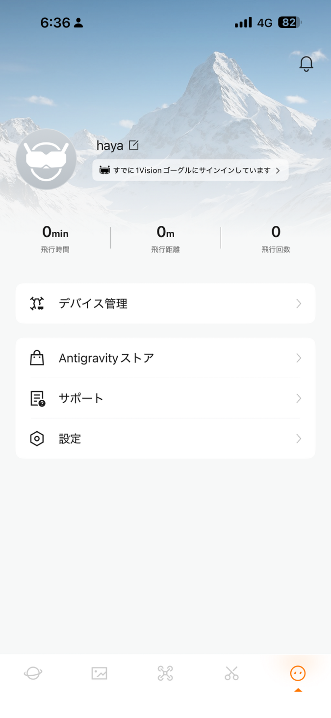 Antigravityアプリを起動し、右下のアイコンを押します。
